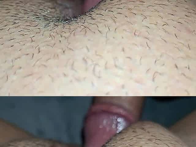 I rub my petite penis on her large twat.