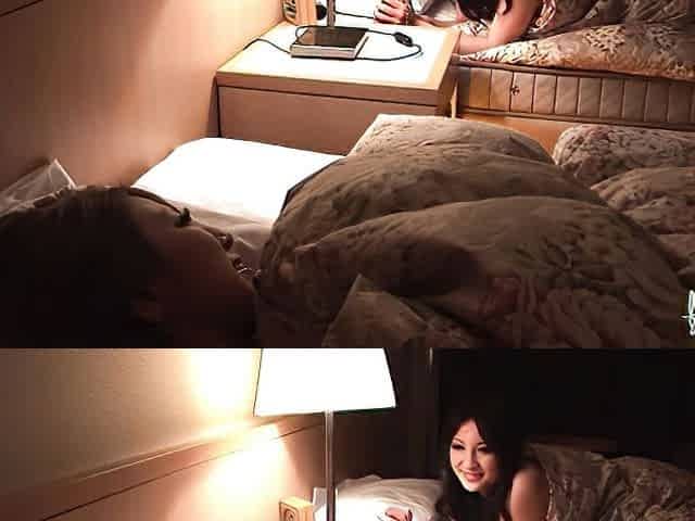 Solo Asian chick enjoys while fingering her clitoris on the bed