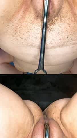 nasty hand missed a corn stick and hit a larger stick ... Cougar plays with a vibrator