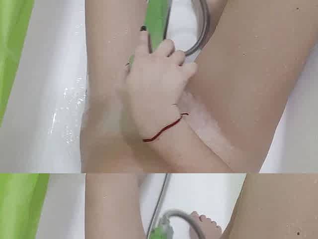 Whashing hot horny pussy. Touching clit