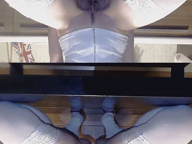 Rachel Aziani pleasures her big clit in sexy nude thigh highs