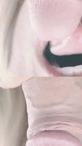 Close-up Blowjob with Cum in Mouth and Cum on Her Lips