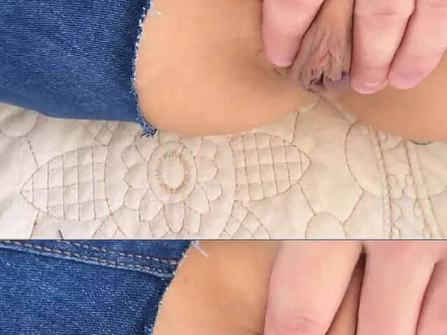 Masturbating stepsister finally fucked in ripped denim jeans