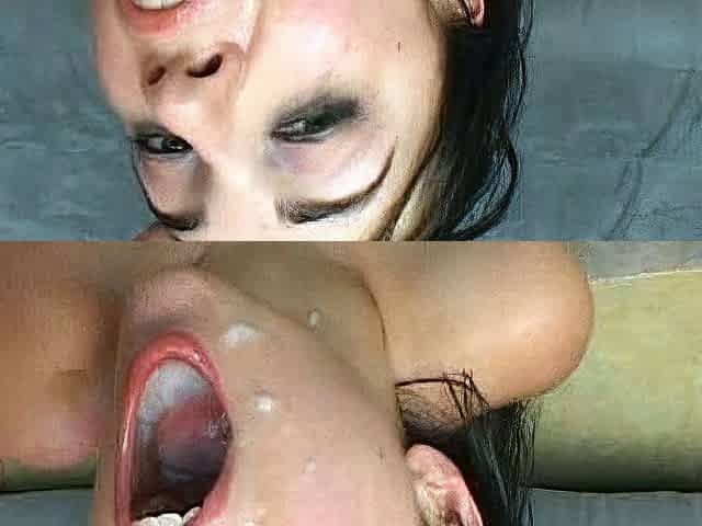 Close up with japanese getting mouth jizzed
