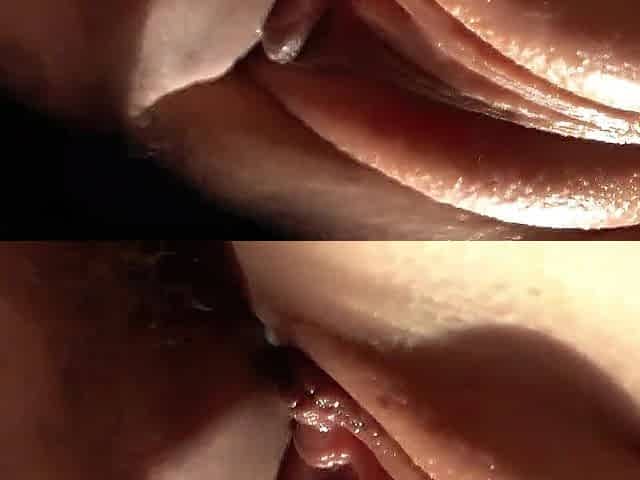 SLOW MOTION. Highly close-up. Semen leaking down the vagina