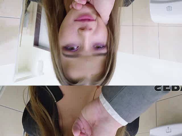 Sexy Blonde with big tits try on haul transparent clothes. Video from public locker room