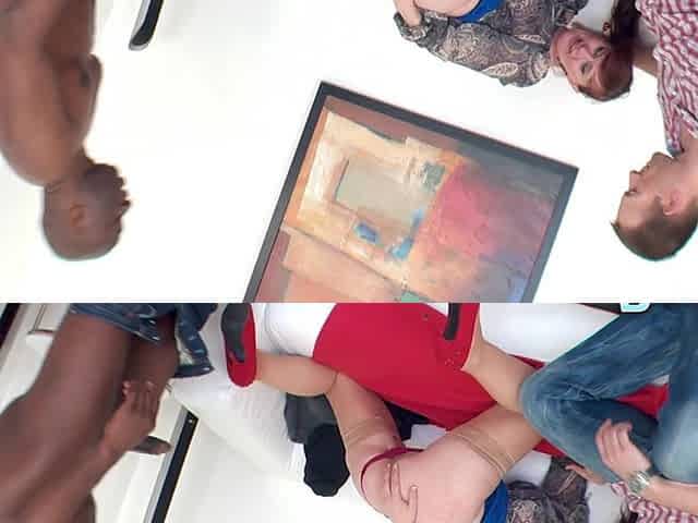 Interracial CFNM scene with one black dude, Bella Hunter and friends