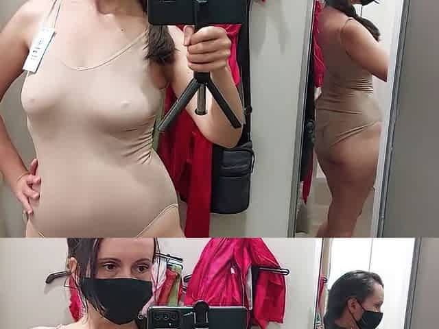 Amateur wife filmed trying on clothes. Milf hairy pussy, hairy ass, big tits, big nipples