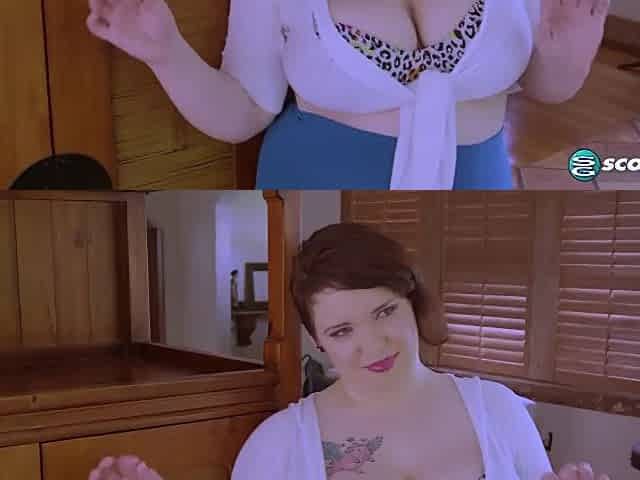 Ginger fatty trying on new clothes