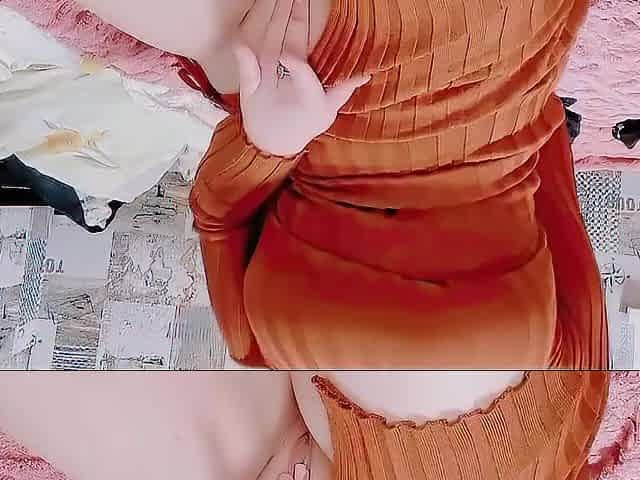 Emoji teen shows big tits and fingers masturbates in cosplay