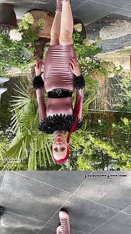 "Miss Fetilicious in electric rose latex dress"