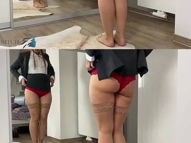 business woman trying different pants - business-slut