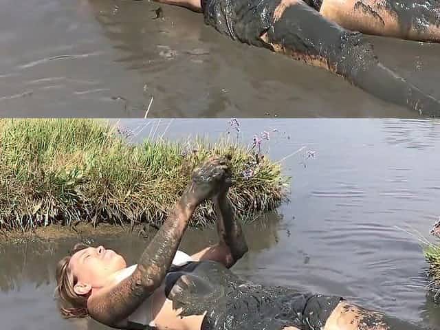 Sexy Girl Playing In The River Mud. Muddy Fun (fully Clothed)