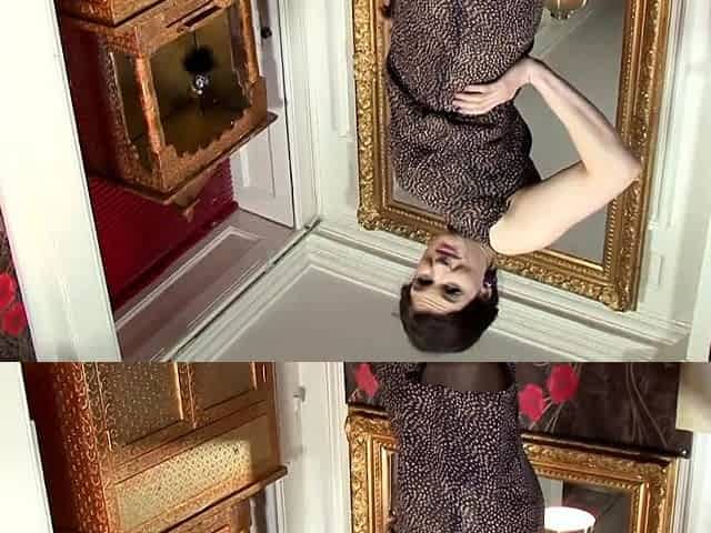 Lusty brunette wears sexy golden clothes and gets ready to take them off