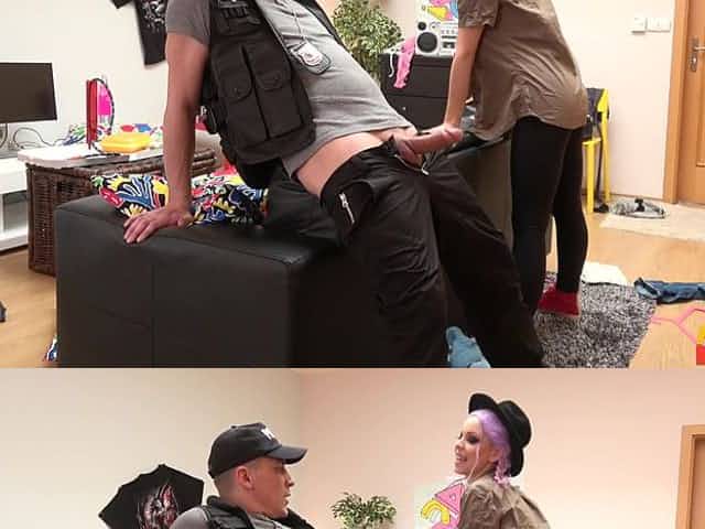 Cum on face ending for a sexy babe after a cop is done fucking her
