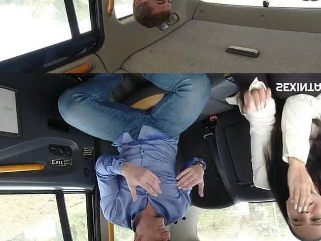 The horny driver persuaded the young naive brunette to suck his dick