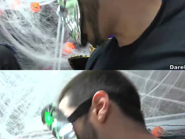 Big-Breasted Female Singer With Evil Makeup Sucks Two Dicks