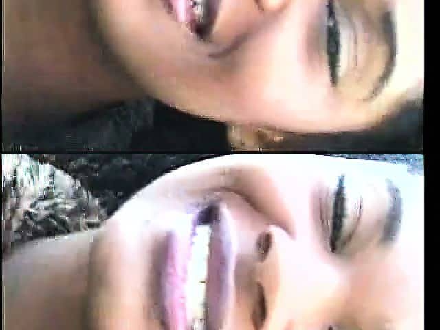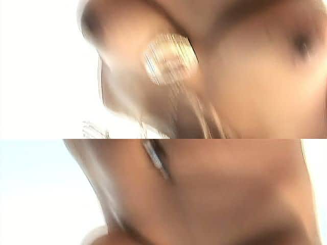 Skinny ebony babe takes two throbbing cum guns in her skilled hands