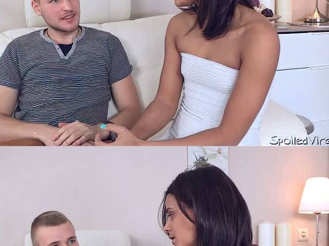 Shy raven haired bitch pleases her beefcake partner with steamy deep throat