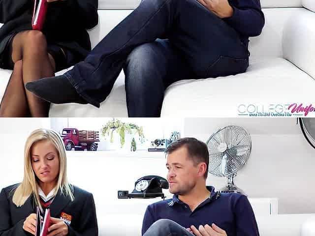 Dixie Lynnin in pigtails gets fucked by her boyfriend in a steamy cfnm scene