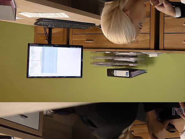 Blonde secretary Donna Bell rides her bosses cock and swallows cum
