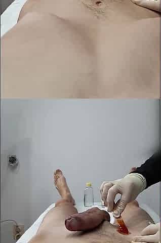 Depilation of a palpitating, swollen dong. The cosmetologist is embarrassed.