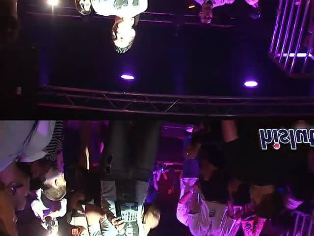 A club slag with big boobs goes dick crazy and fucks a guy in public