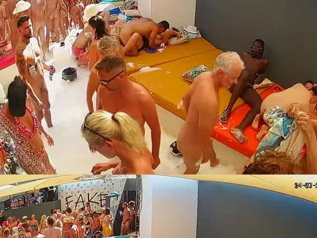 Kinky Danish Miss F sucking cocks at swingers gangbang party in a Copenhagen swingers club