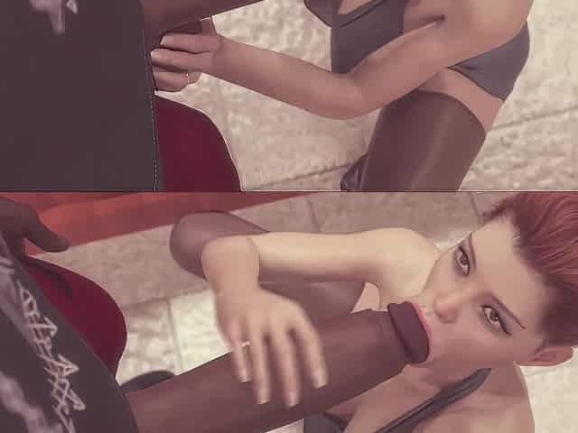 3d animated chick seduced at club allows random guy to bang her throat and finish in her cunt in toilet