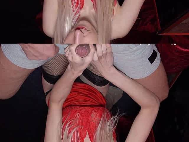 Beautiful long-haired pornstar gives a great blowjob in a club