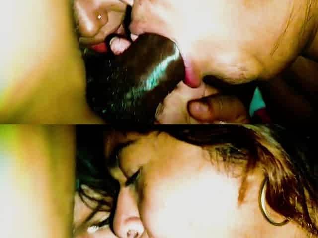 Interracial blowjob for brunette sucking big black cock