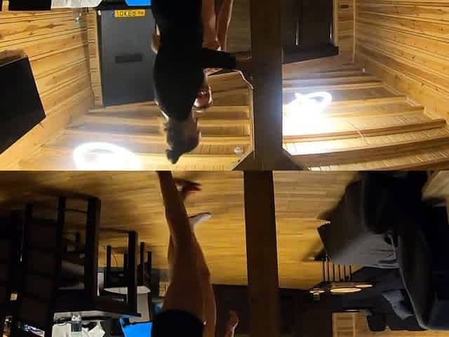 De rodillas y encadenada en el mat de yoga, recibiendo duro anal en doggy style