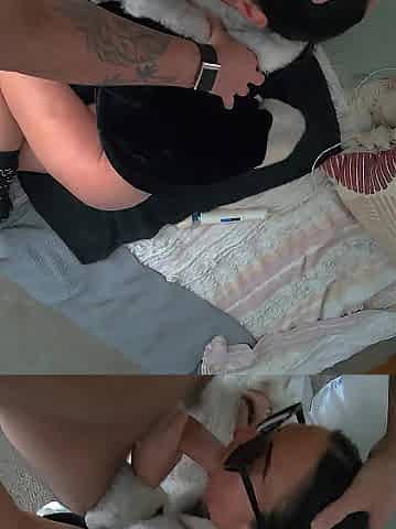 Wife clock in bedtime oral-job