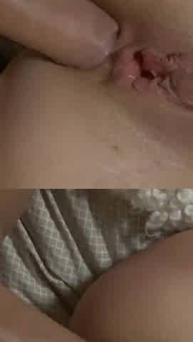 Large rod femboy jerks and cums on his butthole whilst watching a porn