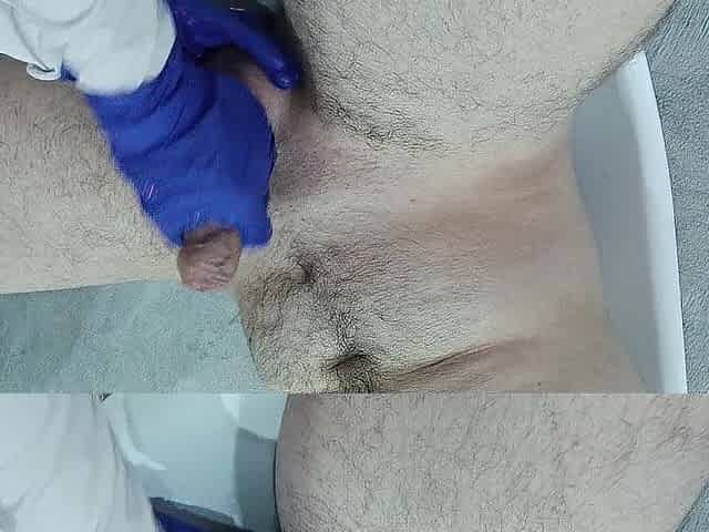 The nurse thoroughly massaged the patient's testicles and weenie to collect semen for analysis.