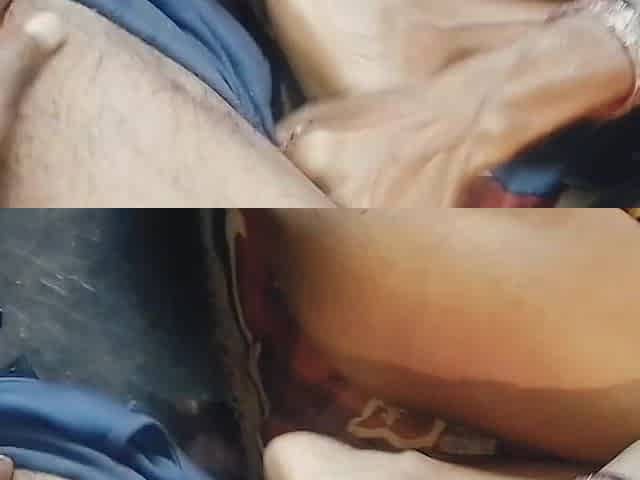 Cuckold hubby sharing small wife with hung chap