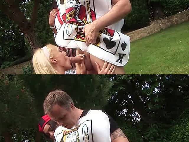 Blonde cocksucker takes on two guys at once for a hardcore double penetration