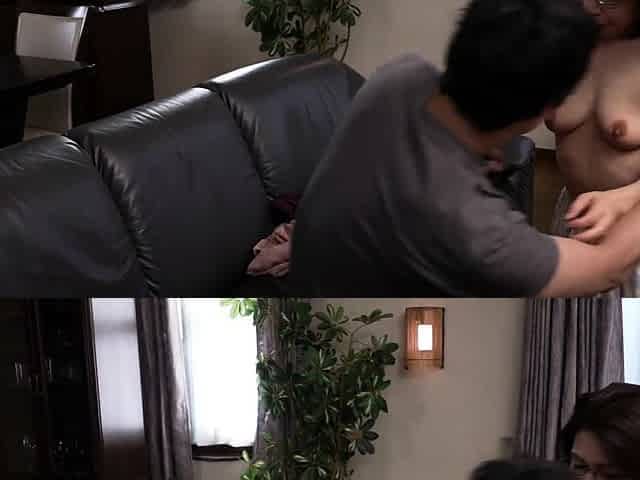 Two naughty babes have some lesbian fun while watching a busty MILF fuck
