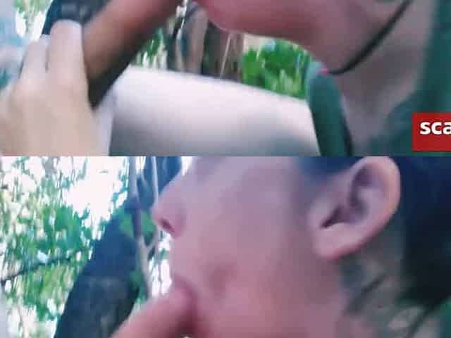 Tattooed Babe Deepthroats a Big Cock
