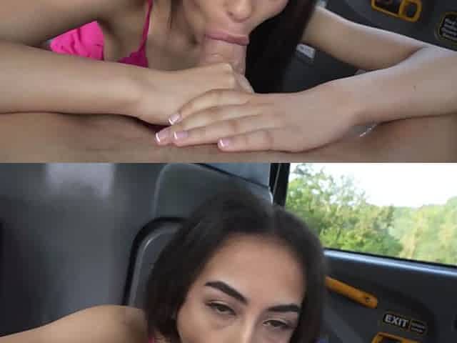 Fake cab - small london teen with tight figure taunts driver before struggling to take his gigantic penis inwards her labia