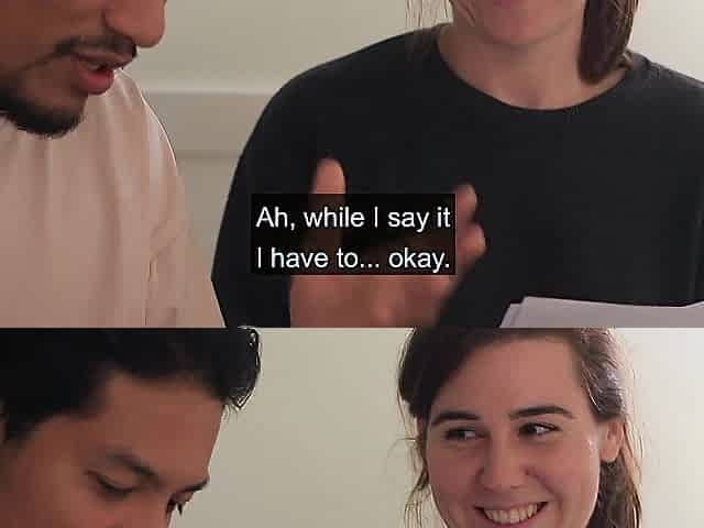 The roommates fool around whilst rehearsing a script.
