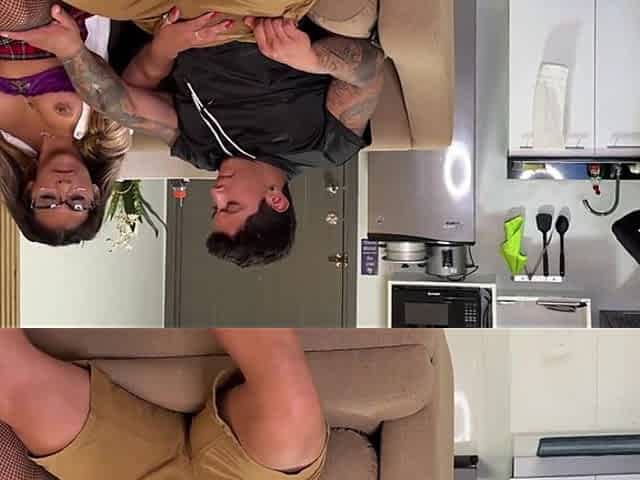 Naughty College Girl Fucks Her Mom's Boyfriend on the Couch and She Doesn't Notice