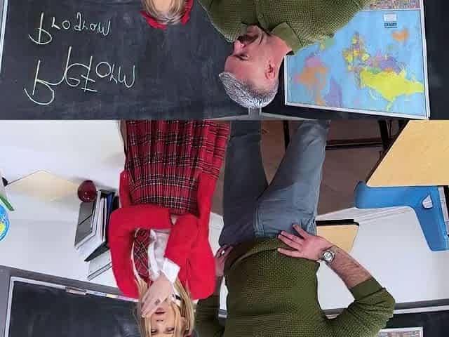 Lewd teen students get sent to the principal's office and suck his large ramrod - Oral-sex Sandwich