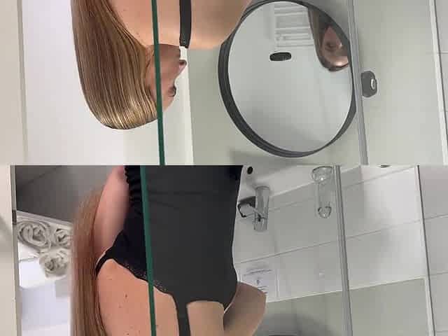 Amazingly marvelous college hotty in the baths with a super petticoat miniskirt shows her booty