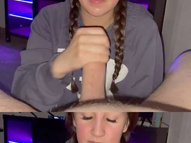 Tattooed Amateur College Girl Gives POV Blowjob
