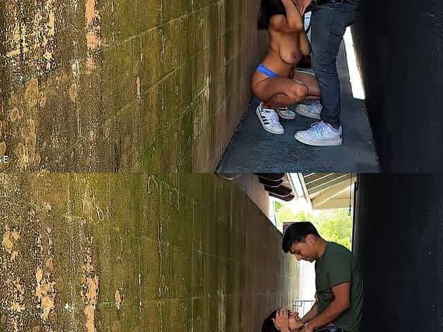 Breasty college whore gets banged in public alleyway