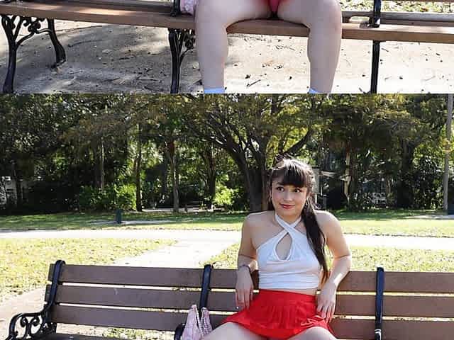 Gorgeous solo college babe doing striptease in a park - Pixie