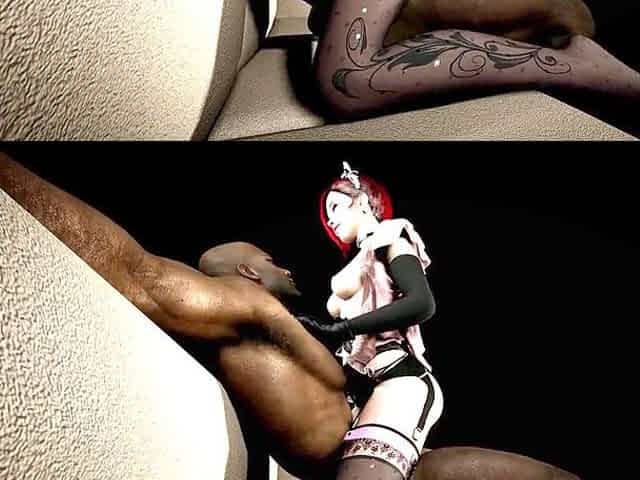 Cute college girl in lingerie rides a big black cock in 3D animation