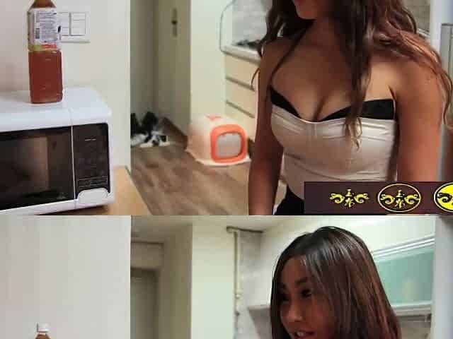 Naughty college slut creamed all over in the kitchen