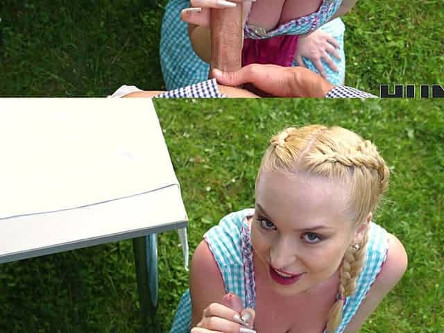 Blonde college chick riding a hard dick outdoors - Vera Jarw